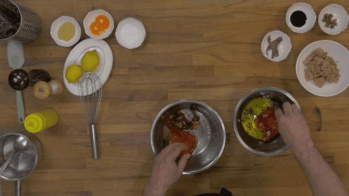 Приготовить соус. Положить в миску тунца, анчоусы, каперсы, добавить черный перец по вкусу. Пробить до однородной массы.
