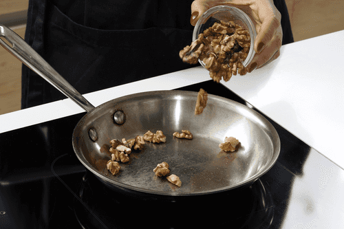 Орехи подсушить на сухой сковороде.