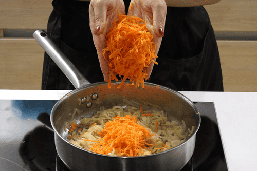 Добавить морковь и продолжить томить еще 5 минут.