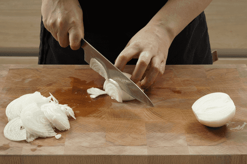 Лук очистить и тонко нарезать.