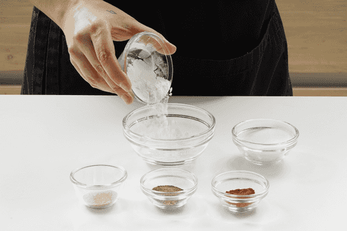 В небольшой миске смешать кукурузный крахмал, соль, перец, паприку и сухой чеснок.