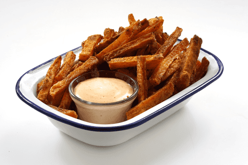 Батат фри в духовке — это великолепный вариант привычного картофеля фри, но с более сладким, насыщенным вкусом и мягкой текстурой. Этот рецепт вдохновлен стремлением к более здоровым альтернативам классической уличной еды. Батат, богатый витаминами и клетчаткой, обретает золотистую корочку благодаря запеканию при высокой температуре, а специи, такие как паприка, чеснок и черный перец, добавляют ему ароматную пикантность. Легкая хрустящая текстура снаружи и нежная мякоть внутри делают этот гарнир идеальным дополнением к мясным и овощным блюдам. Подача с пикантным соусом, например, майонезом со шрирачей, раскрывает всю глубину вкуса. Это блюдо станет отличным выбором для уютного семейного ужина или вечера с друзьями, подарив теплые эмоции и гастрономическое удовольствие.