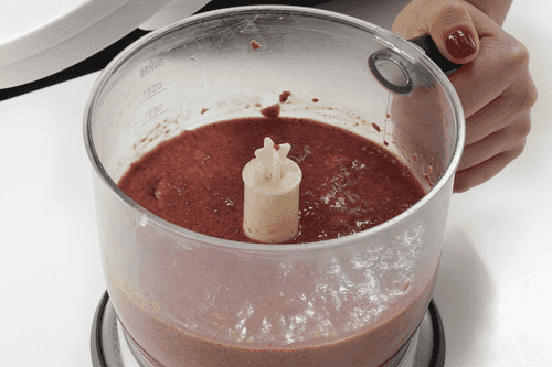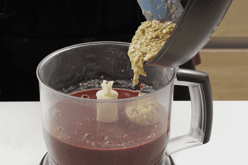 Когда содержимое сковороды немного остынет, соединить его в блендере вместе с пробитой печенью.