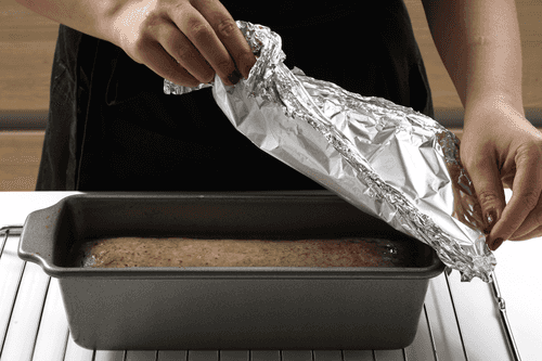 Закрыть ее фольгой, поставить форму в поддон, в который предварительно налить кипятка.