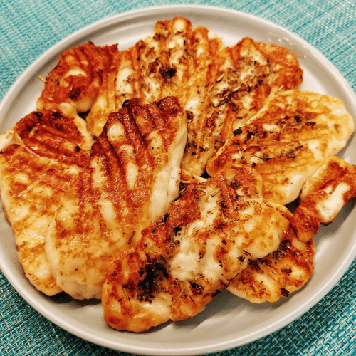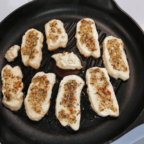 Чесночный халуми с травами на сковороде гриль — это изысканная закуска, сочетающая пикантность чеснока, свежесть лимона и аромат итальянских трав. Родиной халуми считается Кипр, где этот сыр славится своей плотной текстурой, позволяющей ему сохранять форму при жарке. Обжаренный халуми приобретает золотистую корочку, а чесночное масло придаёт ему насыщенный вкус с лёгкой кислинкой лимона. Сумах, используемый в финале, добавляет восточные нотки, подчёркивая сложность аромата. Это блюдо идеально подходит как закуска к вину или как самостоятельный лёгкий перекус, который раскрывает всю глубину средиземноморской кухни.