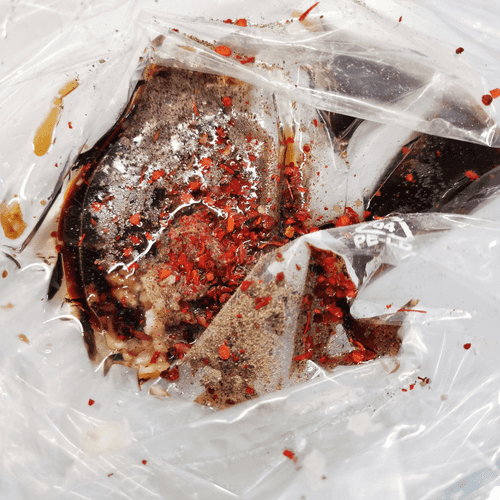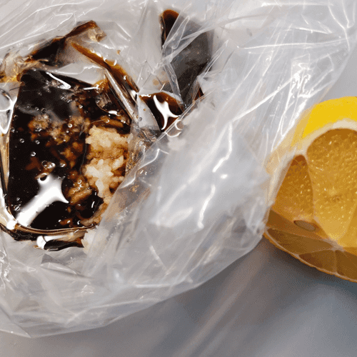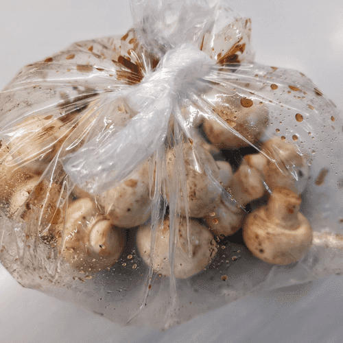 Выложить в пакет грибы, завязать и тщательно встряхнуть. Оставить мариноваться при комнатной температуре на полчаса. Периодически встряхивать.