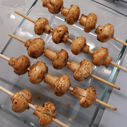 Шашлычки из шампиньонов в духовке — это оригинальное блюдо, которое сочетает простоту приготовления и изысканный вкус. Грибы, пропитанные пикантным маринадом из соевого соуса, оливкового масла, чеснока и лимонного сока, приобретают насыщенный аромат и нежную текстуру. Перец чили и черный перец добавляют остроту, придавая закуске тонкую пряность. Запекание в духовке сохраняет сочность шампиньонов и делает их слегка карамелизированными. Это блюдо идеально подходит для легкого ужина или в качестве закуски на праздничном столе. Благодаря универсальности рецепта, шашлычки можно подать с соусами, свежими овощами или даже как гарнир к мясным блюдам. Вдохновленный восточной кухней, этот рецепт подчеркивает глубину вкуса грибов, раскрывая их новые гастрономические грани.