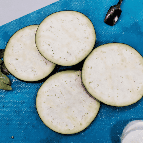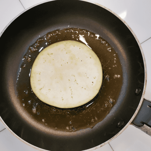 Обжаривать баклажан с обеих сторон до румяности.