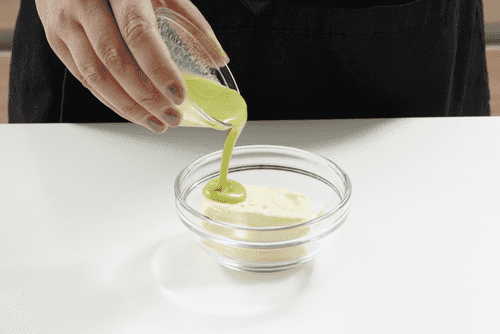 Развести пасту васаби 1 столовой ложкой кипятка до однородности, дать полностью остыть.