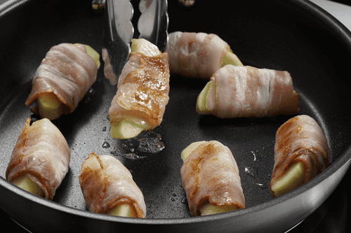 Обжарить яблоки в беконе с каждой стороны до золотистой корочки на среднем огне.