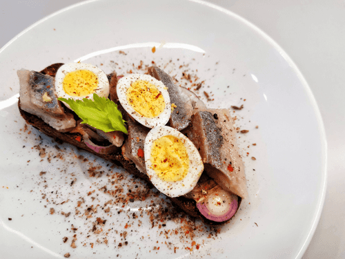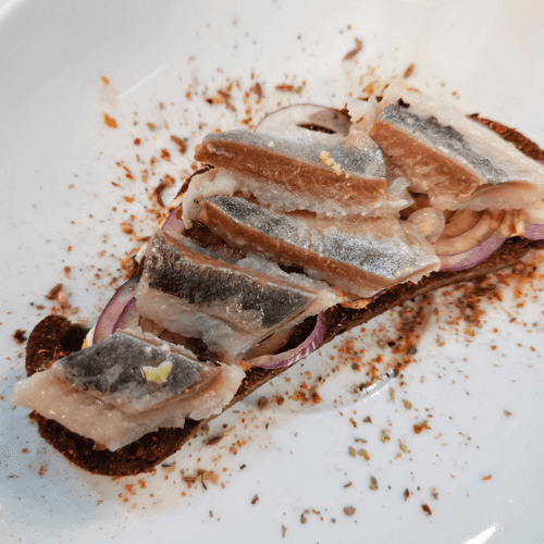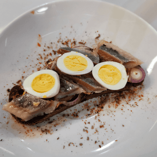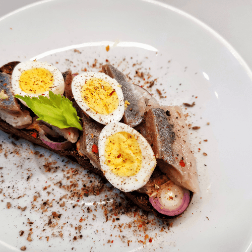 Бутерброд с селедкой и перепелиным яйцом — это гармония вкусов, объединяющая нежность солёной сельди, пикантность аджики и мягкость перепелиных яиц. Этот авторский рецепт придаёт классическому сочетанию рыбы и хлеба новое звучание, дополняя его пряными нотами горчичного масла и легкой остротой чили. Лук добавляет свежести, а ржаной хлеб придаёт бутерброду насыщенный, глубокий вкус. Такой бутерброд идеально подойдет как для утреннего перекуса, так и для изысканной закуски к праздничному столу. Исторически сельдь — важная часть гастрономии многих стран, а использование перепелиных яиц делает блюдо более утонченным и оригинальным. Простота приготовления и богатство вкусов делают этот бутерброд маленьким кулинарным шедевром.