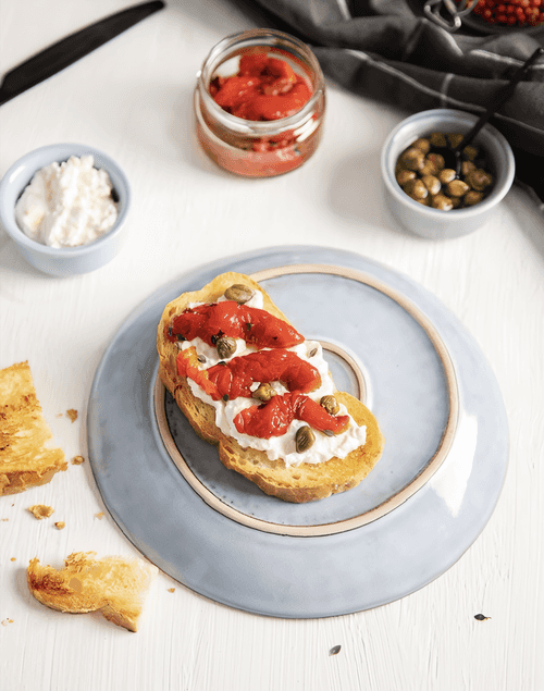 Брускетта с кремом из рикотты и феты с печеным перцем