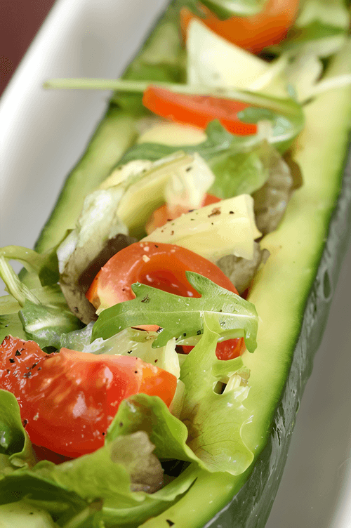 Этот свежий и легкий европейский рецепт наполнен нежными вкусами летних овощей. Огурцы, изящно оформленные в виде лодочек, становятся основой для сочной начинки из помидоров, капусты и яиц, приправленной сметаной. Тонкие травяные нотки укропа добавляют аромат и подчеркивают естественную свежесть блюда. Фаршированные огурцы – это оригинальное и элегантное решение для летнего стола, прекрасно сочетающееся с прохладными напитками. Блюдо может быть идеальной закуской на пикниках и легких ужинах, радуя глаз и вкусовые рецепторы своим балансом свежести и кремовости.