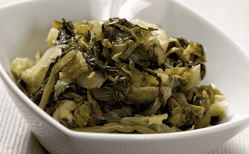 Возьмите молодой латук с еще не распустившимися листьями, подрежьте ножку и свяжите кончики листьев, чтобы они не раскрылись в процессе приготовления.