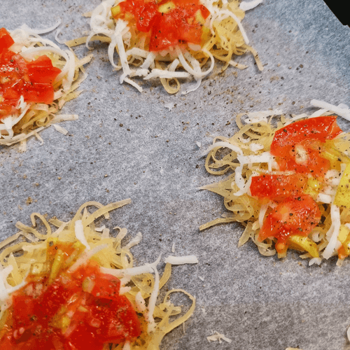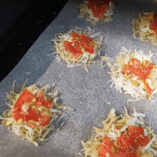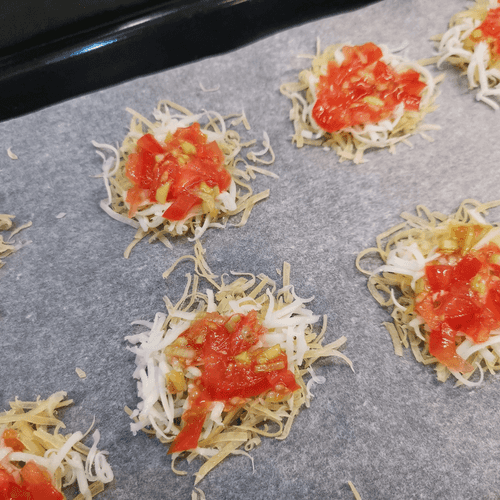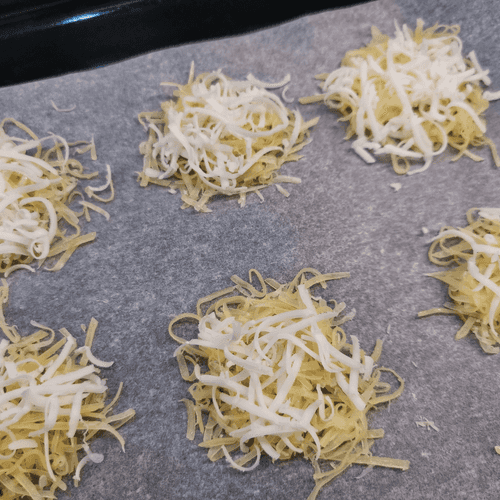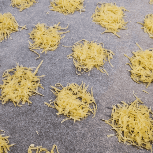 Выложить сыр на застеленный пергаментом противень. Каждая порция равна одной столовой ложке.