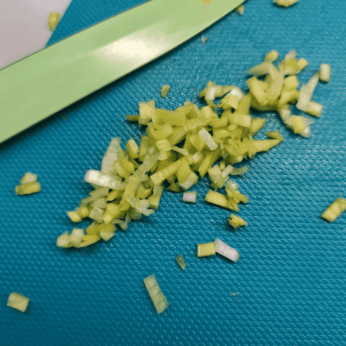 Лук мелко нарезать.