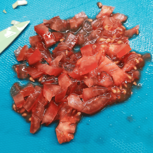 Помидор мелко нарезать.