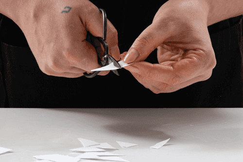 Лист бумаги нарезать на мелкие произвольные кусочки.