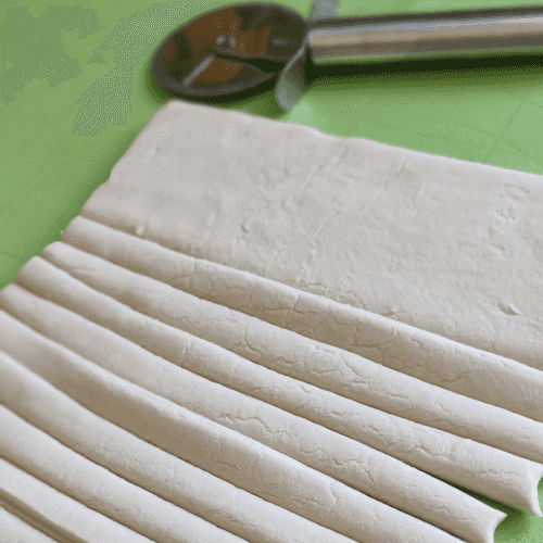 Тесто нарезать полосками шириной 1 см.