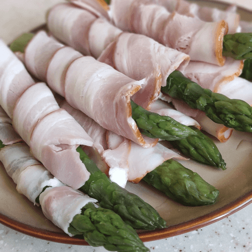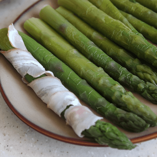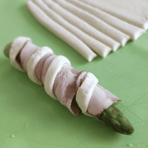 Обернуть спаржу полоской бекона.