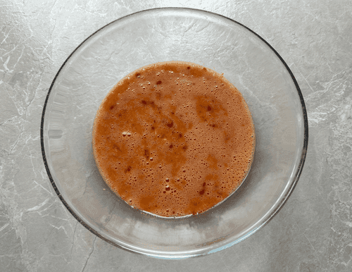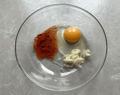 В миску разбить яйцо, добавить копченую паприку и измельченный чеснок.