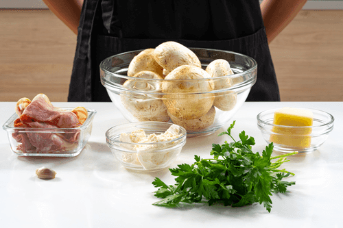 Подавать шампиньоны с беконом горячими.