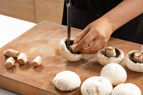 Грибы помыть, отделить ножки от шляпок.