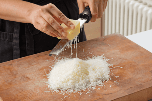 Натереть пармезан на мелкой терке.