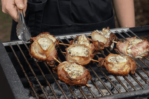 Шампиньоны с беконом на мангале