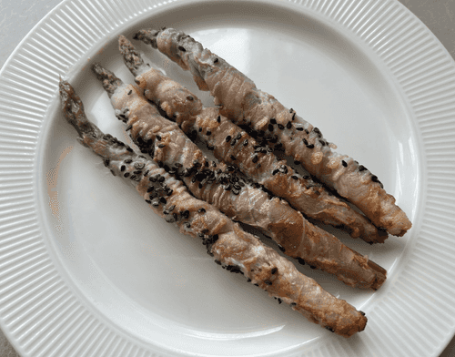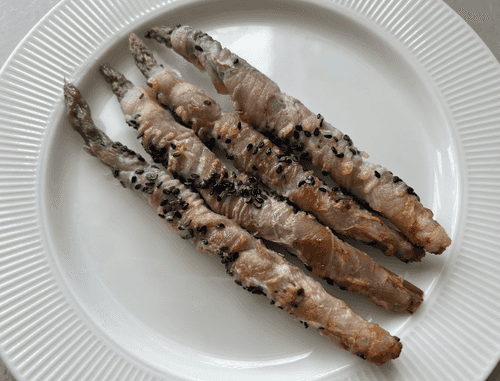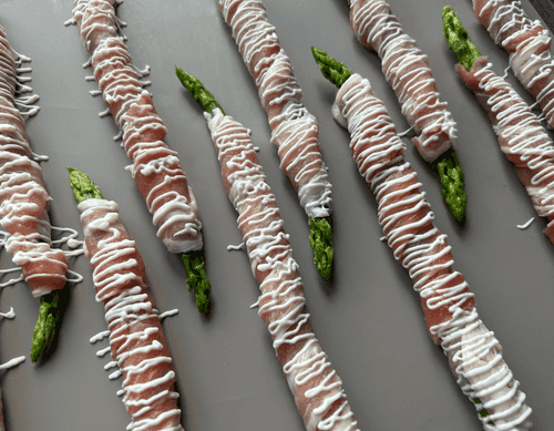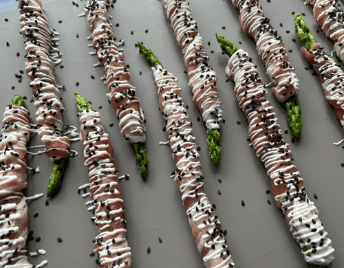 Спаржа, запеченная в беконе — это блюдо, объединяющее нежность овощей с насыщенным вкусом мясного деликатеса. Родом из итальянской кухни, оно воплощает в себе баланс простоты и изысканности. Спаржа, обладая тонким ореховым оттенком, идеально сочетается с хрустящим солоноватым беконом, создавая гармонию вкусов. Запеченная с майонезом и кунжутом, она приобретает легкую кремовость и приятный аромат. Это блюдо подходит как для утонченной закуски, так и для полноценного гарнира, подаваемого как в горячем, так и в холодном виде. Оно украшает стол своей элегантностью и легкостью, делая трапезу запоминающейся.