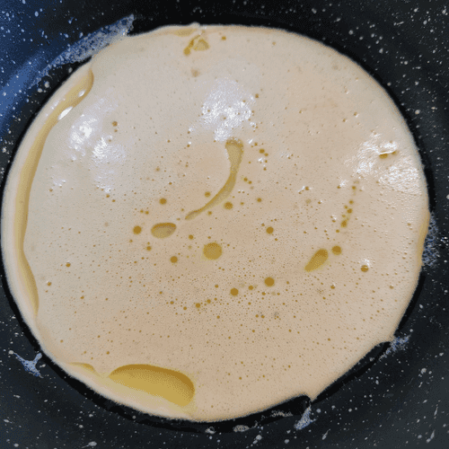 Как только нижняя сторона подрумянится, перевернуть.