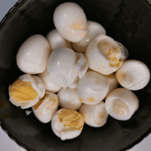 Перепелиные яйца отварить вкрутую.