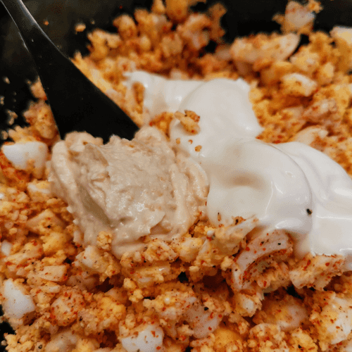Размять яйца вилкой.