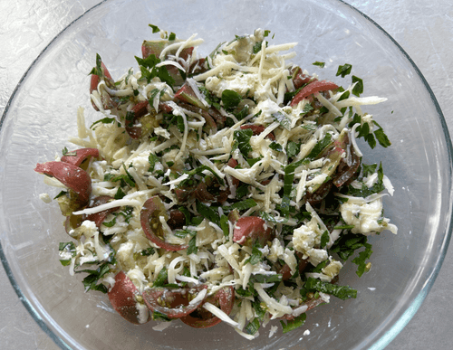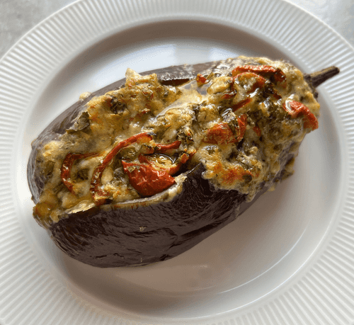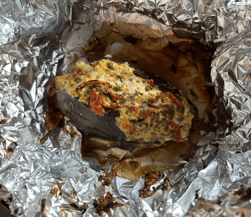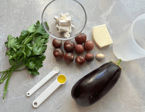 Битые баклажаны с сыром и помидором — это блюдо, в котором оживает душа грузинской кухни. Оно сочетает мягкость печеного баклажана с насыщенным вкусом брынзы и твердых сыров, а сладость черри придаёт приятную свежесть. Этот рецепт олицетворяет традицию использования простых, но выразительных ингредиентов, которые раскрывают свою суть при правильной обработке. Баклажан, отбитый до мягкости, становится идеальной основой для ароматной начинки из сыра, зелени и чеснока. Процесс запекания делает вкус более глубоким, а текстуру — нежной. Подача с оливковым маслом подчёркивает восточные нотки, добавляя блюду изысканности. Это угощение идеально подходит как самостоятельное блюдо или как часть большого грузинского застолья, где ценится гармония вкусов и богатство ароматов.
