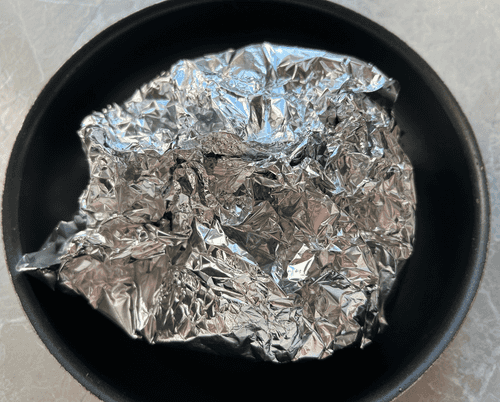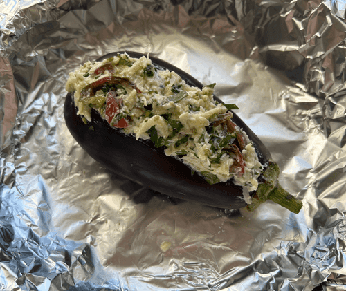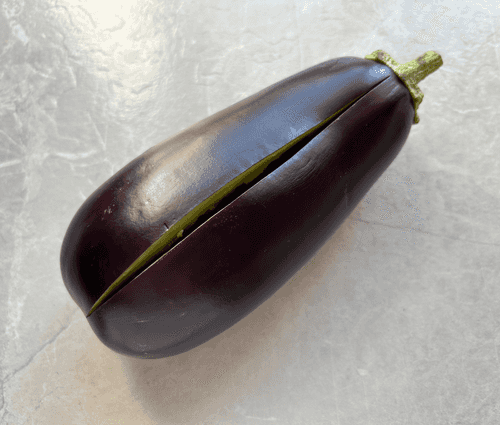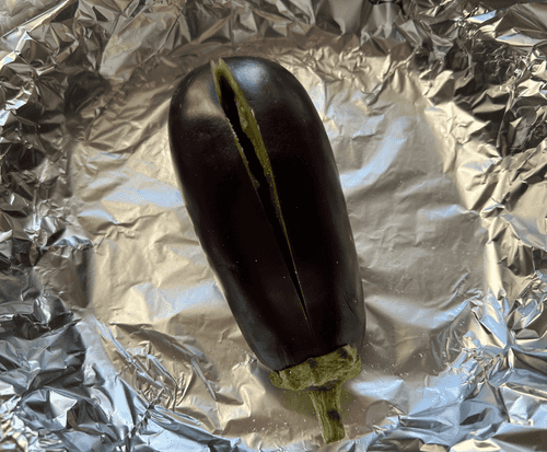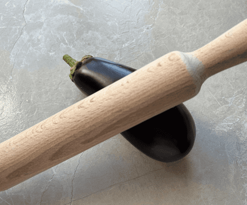 Отбить баклажан скалкой или молоточком, пока он не станет мягким на ощупь.