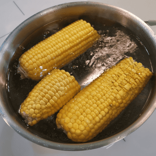 Как только вода закипит, опустить в нее кукурузу и убавить огонь до среднего.