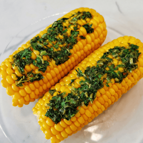 Отварная кукуруза со сливочным маслом и зеленью