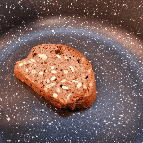 Хлеб подсушить на сухой раскаленной сковороде с обеих сторон в течение 3 минут.
