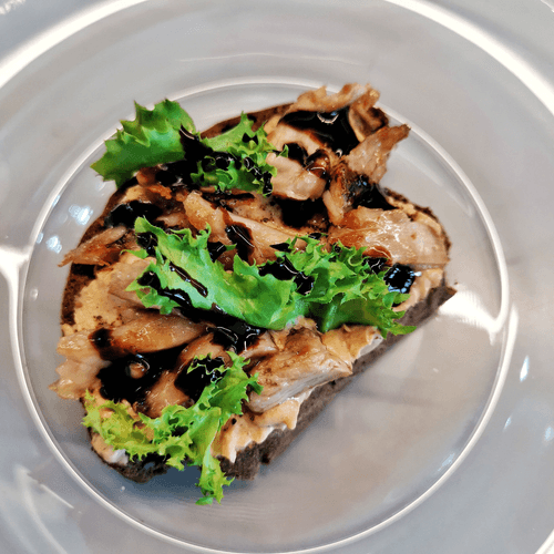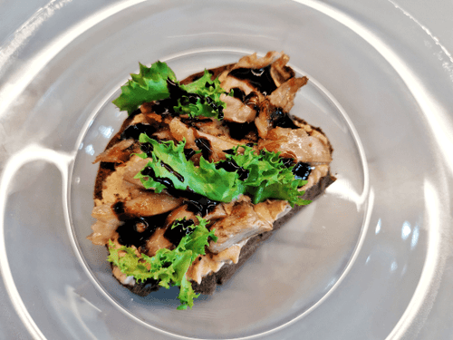 Брускетта с перепелом — это изысканное сочетание простоты и утончённости французской кухни. Тонкий ломтик хрустящего цельнозернового хлеба, подсушенный до золотистой корочки, становится основой для нежного перепелиного филе, которое обжаривается в ароматном оливковом масле с морской солью. Паштет придаёт блюду насыщенность, а молотый черный перец подчеркивает вкусовую глубину. Завершают композицию свежая зелень и изысканный бальзамический крем, который добавляет легкую кисло-сладкую нотку. Брускетта с перепелом — идеальный аперитив, способный украсить любое гастрономическое событие, будь то праздничный ужин или уютное семейное застолье.