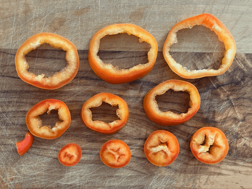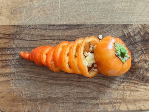 Перец черри помыть и нарезать кружочками.