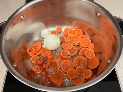 Морковь почистить, помыть и нарезать кружочками.