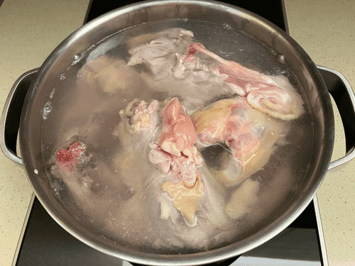 Кости порезать и добавить в кастрюлю. Добавить воду, чтобы покрывала кости. Варить до готовности мяса.