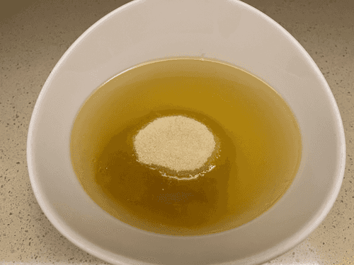 Небольшую часть бульона смешать с желатином. Тщательно размешать.