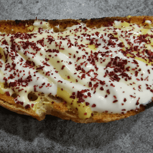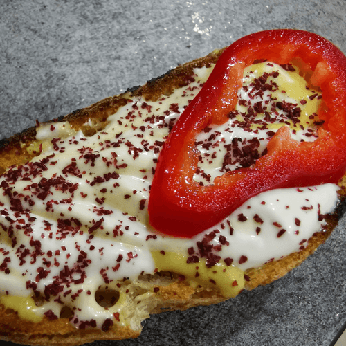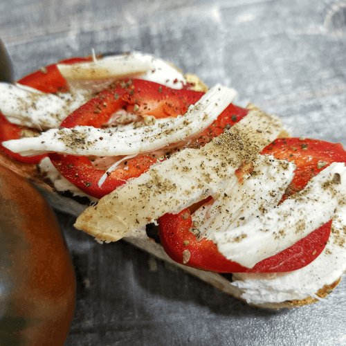 Брускетта с курицей – это изысканное блюдо, сочетающее хрустящую чиабатту с нежным куриным филе. Родом из Италии, брускетта традиционно подается как закуска, а этот вариант с курицей приобретает насыщенный и пикантный вкус благодаря горчице, майонезу и ароматному сумаху. Сладковатый перец рамиро придает свежесть и легкость, а черный перец и морская соль подчеркивают вкус ингредиентов. Идеальна для уютных домашних посиделок или как элегантная закуска к вину. Вкус гармоничный: теплый хлеб контрастирует с сочной начинкой, создавая сбалансированное сочетание текстур и ароматов. Это простое, но утонченное блюдо, способное украсить любой стол.