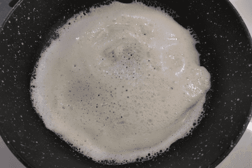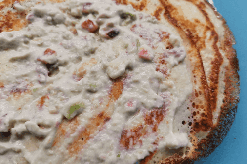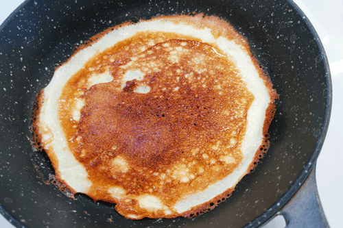 Когда блин подрумянится, перевернуть и жарить еще 2 минуты на среднем огне.