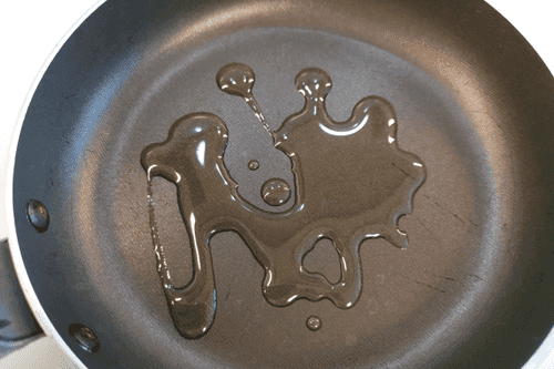 На сковороде разогреть оливковое масло.