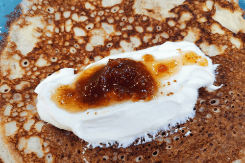 Блины со сметаной и вареньем из айвы – это воплощение уюта и традиционного русского гостеприимства. Тонкие, нежные блинчики, пропитанные кисло-сладкими нотками айвы, создают гармоничное сочетание вкусов. Сметана добавляет мягкость и легкую кислинку, идеально дополняя фруктовый оттенок варенья. Этот рецепт восходит к классическим русским традициям, когда блины были неотъемлемой частью семейных праздников и масленичных застолий. Айвовое варенье придает блюду особую изысканность, раскрывая богатство вкусовых оттенков. Блины можно подавать как самостоятельное блюдо на завтрак или угощение к чаю, создавая атмосферу тепла и домашнего уюта.
