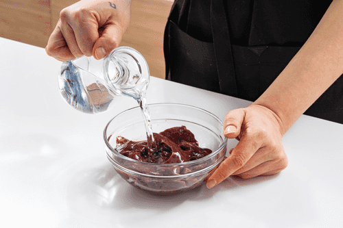 Очистить печень от пленок и слизи. Положить в миску с холодной водой на 15 минут.