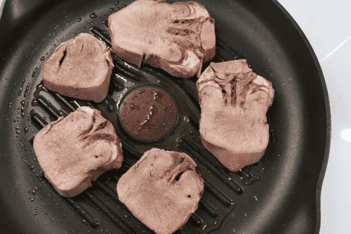 Говяжий язык, обжаренный на сковороде гриль
