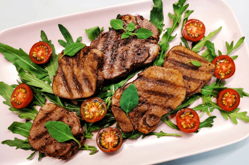 Говяжий язык, обжаренный на сковороде гриль – это истинное наслаждение для гурманов русской кухни. Этот деликатес, известный еще с царских времен, сочетает в себе нежность вареного языка с аппетитной хрустящей корочкой, появляющейся при жарке на гриле. Приправленный шафраном, солью и перцем, он приобретает богатый аромат и утонченную глубину вкуса. Сервировка с руколой, помидорами черри и свежим базиликом добавляет блюду свежести и легкости. Говяжий язык – символ изысканности, идеально подходящий как для торжественного застолья, так и для уютного семейного ужина. Богатый белком и полезными микроэлементами, он питателен и гармонично сочетается с различными гарнирами.